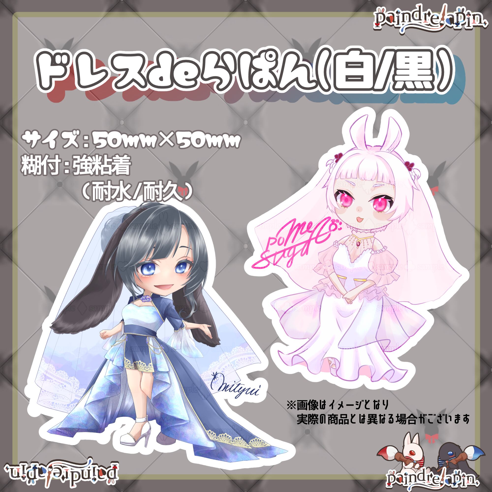 ウエディングドレスを纏ったうさぎ達の可愛らしいステッカーをデザインしました♬